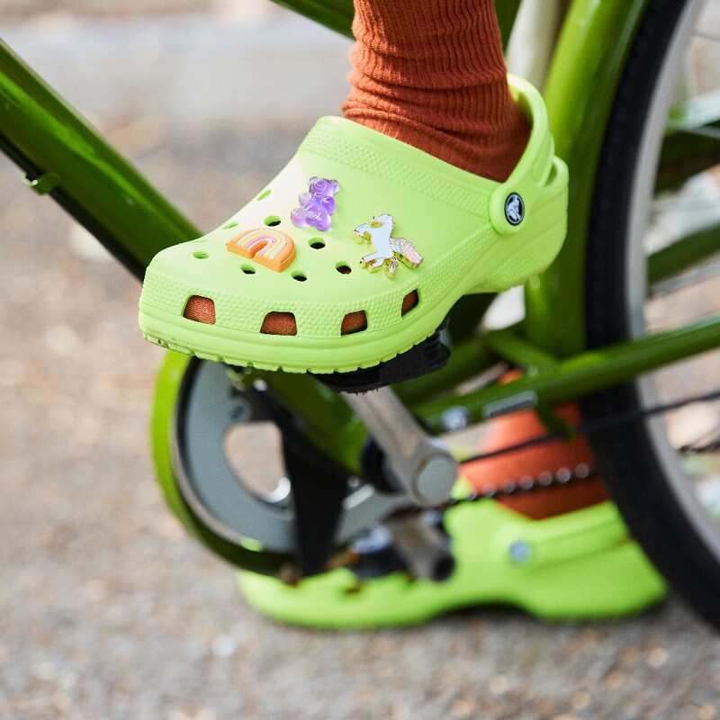 最近几次经过或是走进Crocs的店内,猜猜什么样子的消费者最多?答案就是脚上已经穿着一双经典Clog,眼睛正看着其他颜色、考虑再购入另一双同款的人!高标誌性的斜方圆头设计,带着一点呆萌的童趣,丰富的色选又可以以自己的喜好别上各式的Jibbitz装饰,打造专属于己的款式。